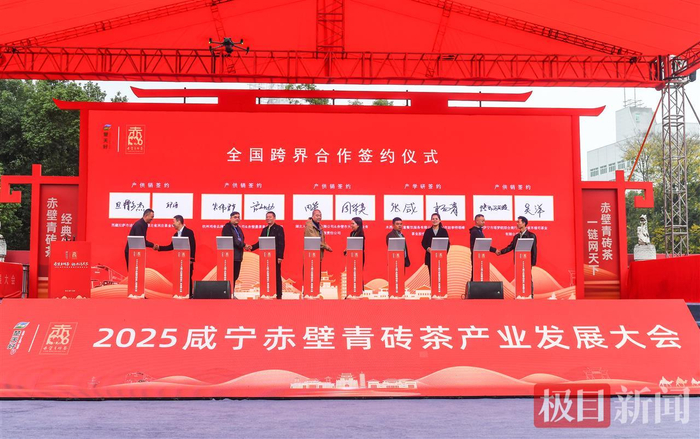 11月10日,2025咸宁赤壁青砖茶产业大会在赤壁市人民广场开幕,吸引国内外多位专家学者、茶业同仁参加。开幕式上,30家企业与本地茶企签订产供销、产学研合作协议,并上线赤壁青砖茶产业供应链服务平台小程序。